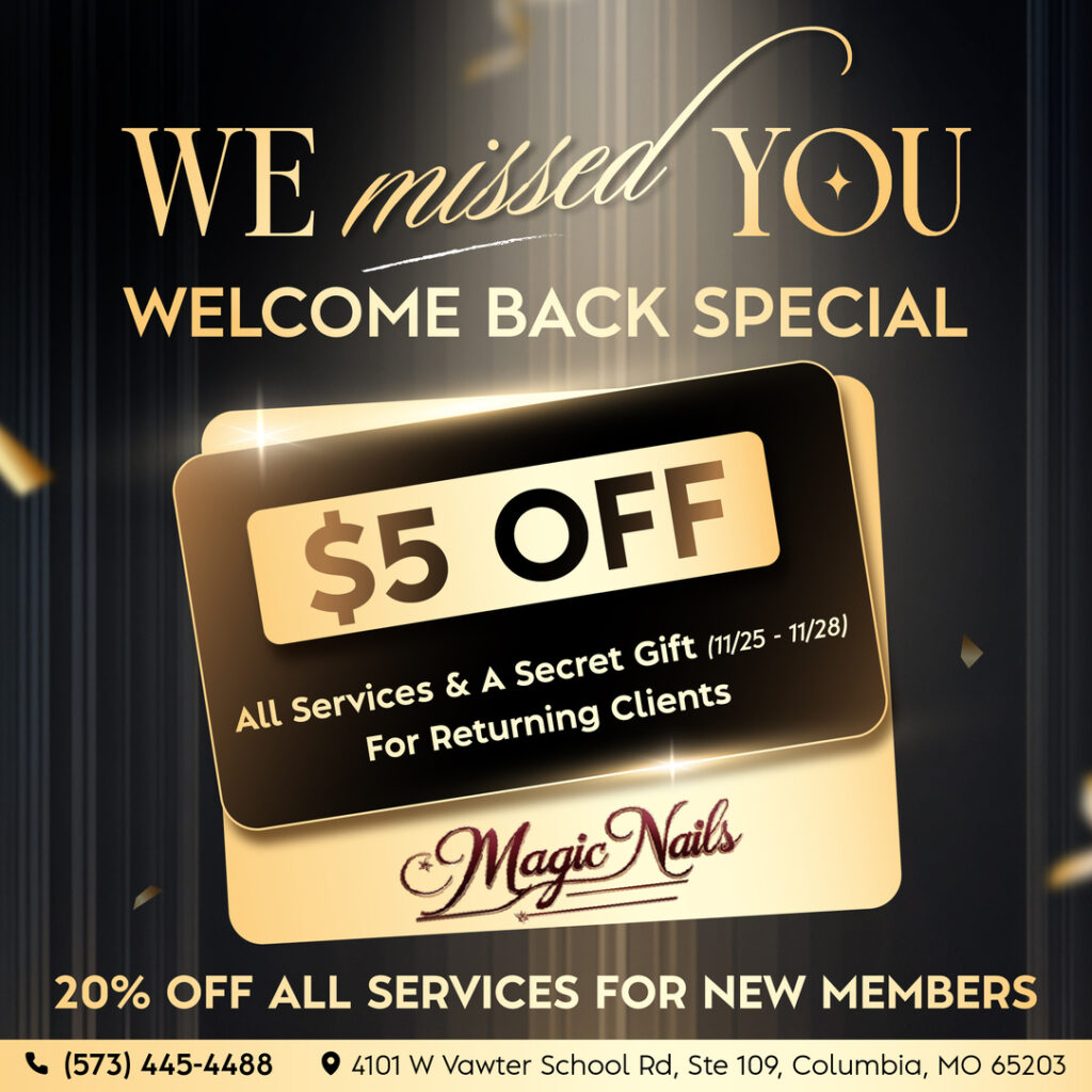 Stay connected to discover exciting new services and exclusive rewards at Magic Nails.